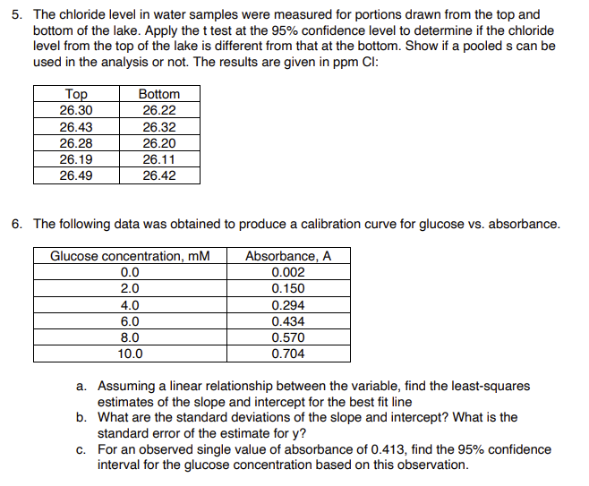 [Solved] 5. The chloride level in water samples were meas